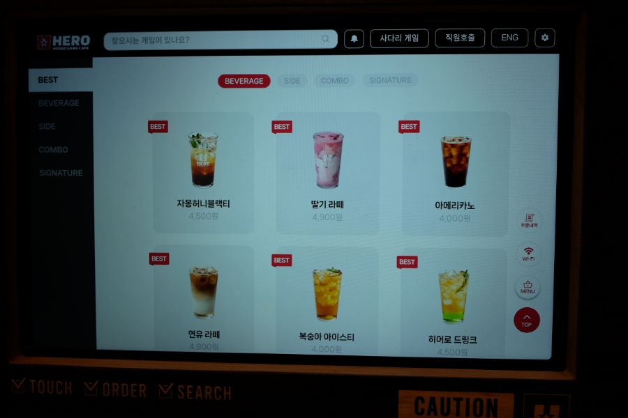 히어로보드게임카페 음료 필수주문